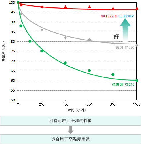 在铜合金中拥有最高等级的耐应力缓和特性,在高温下也能保持接触力。与青铜相比强度更高,而且折