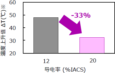 - 导电率比以往的NKT322提升70%左右,因此对电子零件的电流容量有提升,并且对抑制发热有改善。