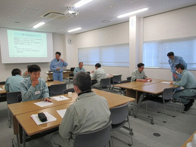 各現場における安全教育の強化・充実を目指し、危険体感教育センターの熟練講師が、JX金属各箇所およびグループ会社の安全教育担当の育成を支援します。