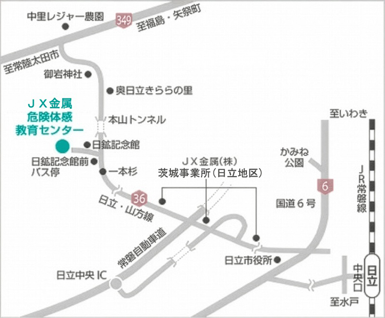 JR常磐線日立駅(中央口)からタクシー(約20分)、または茨城交通バス東河内行き「日鉱記念館前」停留所(約30分)