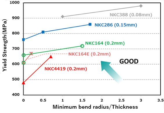 NKC286 is a Corson alloy combining high strength, high electrical conductivity, and excellent bend formability.