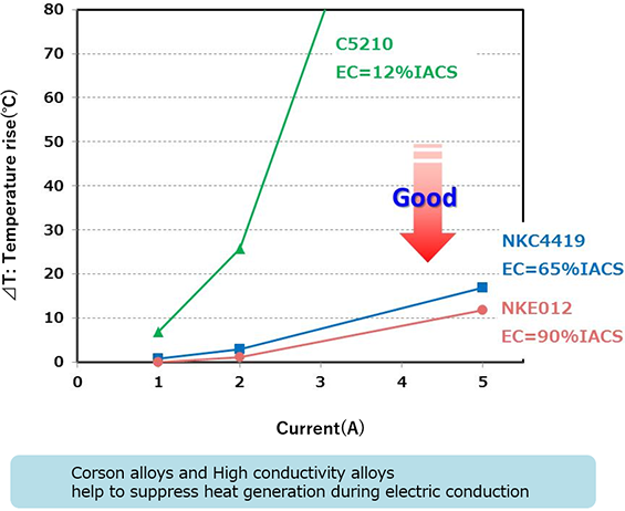 NKE012 is a copper alloy developed by adding small amounts of tin to copper and applying our proprietary rolling and thermal process technologies to improve strength, thermal resistance, and stress relaxation resistance properties while maintaining high electrical conductivity.