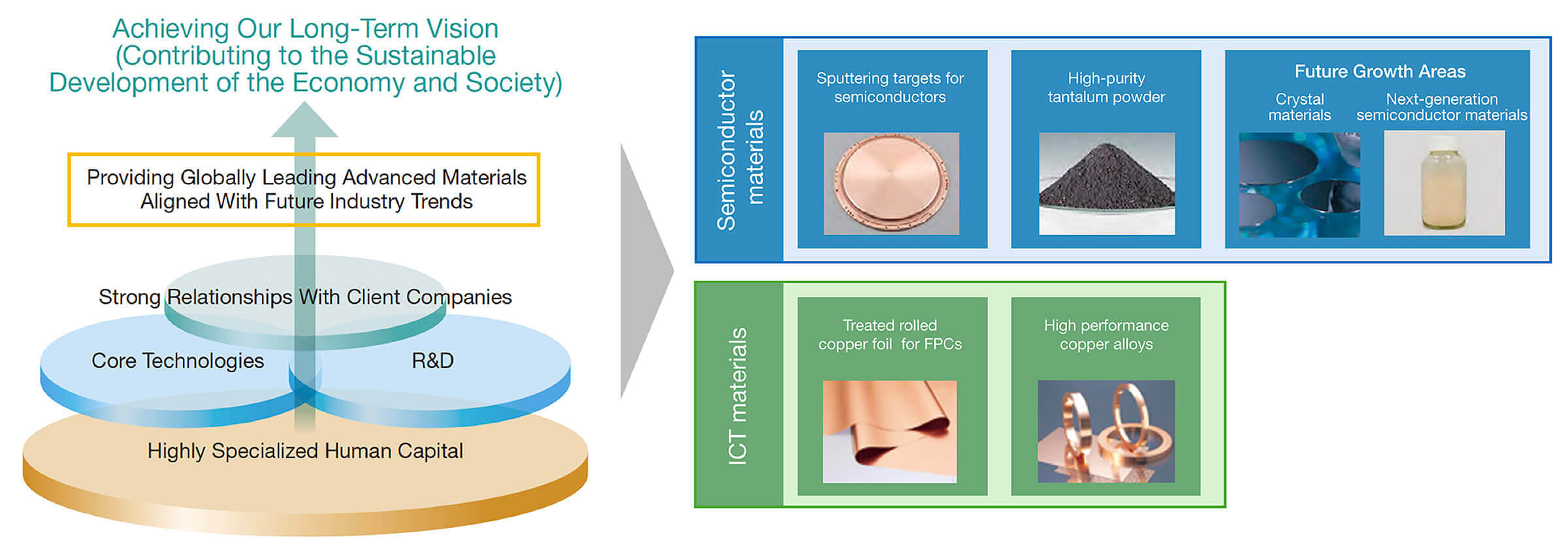 Semiconductors are becoming increasingly advanced every year, and consequently, there is a demand for high-quality sputtering targets that can form finer wiring. We have established strong relationships built on trust with semiconductor manufacturers and semiconductor equipment manufacturers through the stable supply of high-quality products, and further growth in the scale of our business is anticipated in the future.