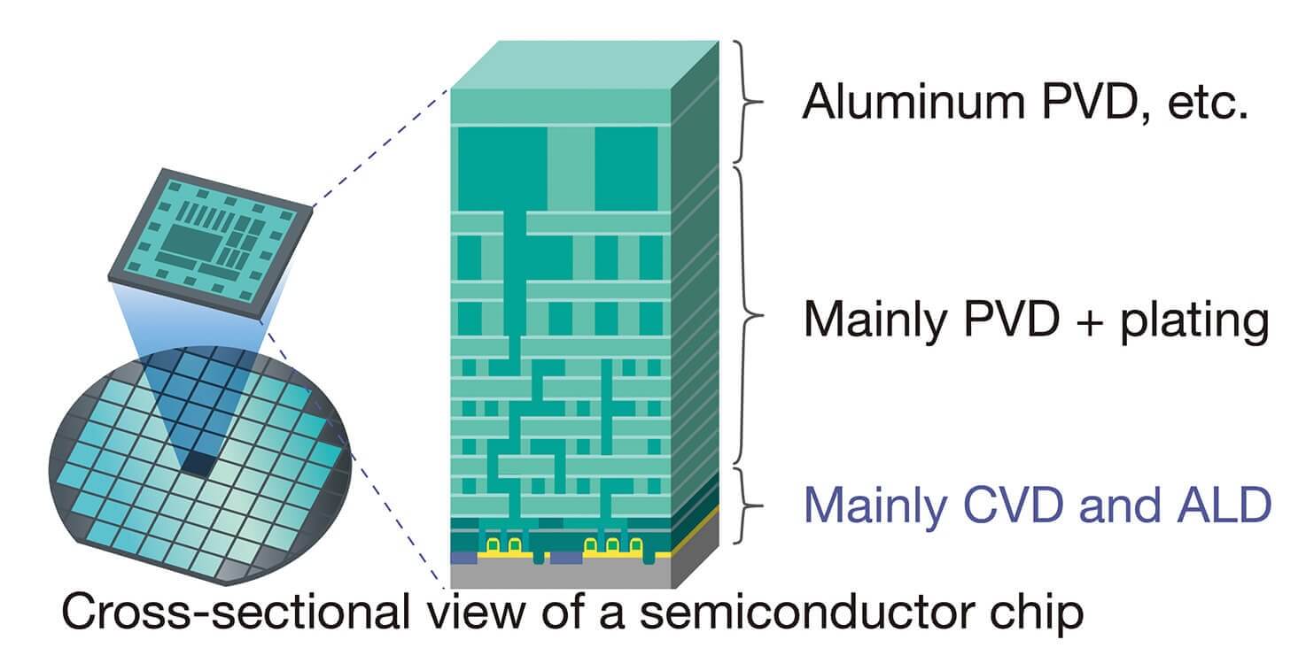 Our next-generation semiconductor materials business manufactures materials used in chemical vapor deposition (CVD) and atomic layer deposition (ALD) processes.