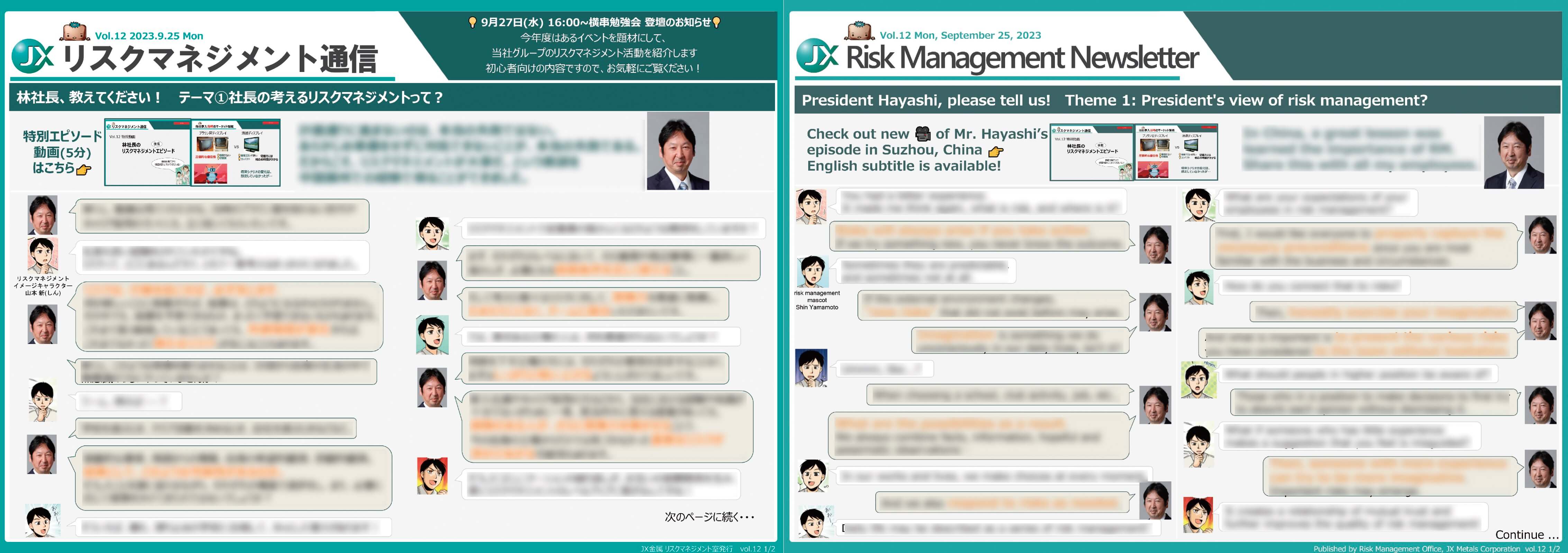 Risks are not limited to Japan, but exist everywhere in any business organization, regardless of its size or location. To this end, in fiscal 2023, we also began publishing an English version of the newsletter to promote risk management among employees in all regions.