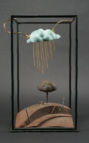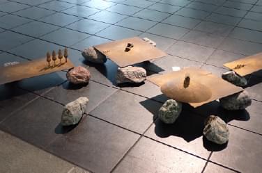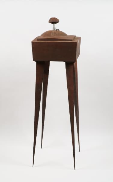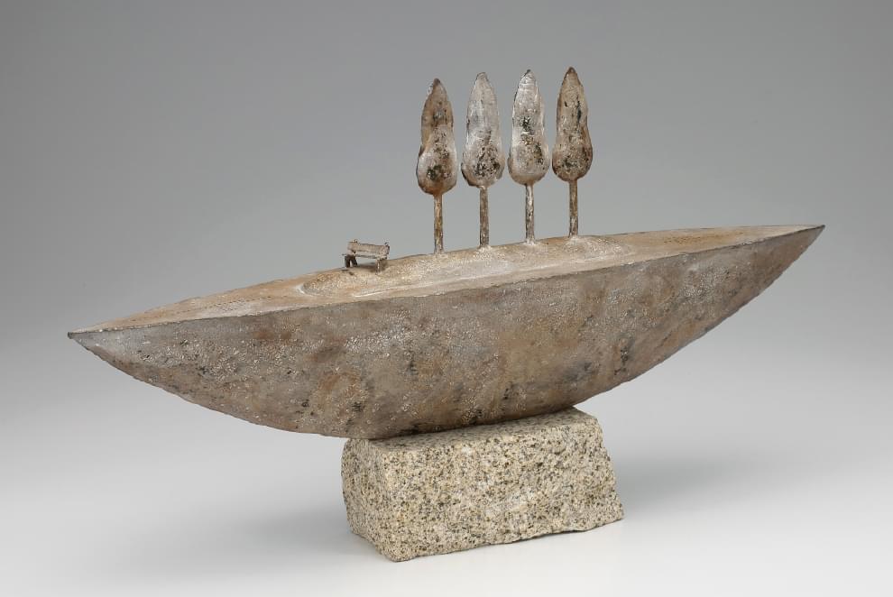 W60×D11.5×H33.5(cm) 鉄、自然石 2016年心象風景をテーマに制作している。それは、子供の時に見た風景であったり、旅先で出会った風景であったりする。