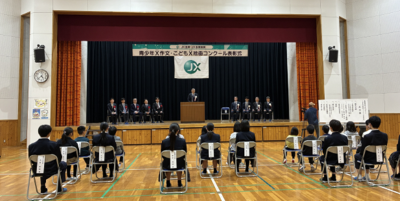 2月16日(月)、JX金属株式会社(以下「当社」)とJX金属製錬株式会社(以下「JX金属製錬」)は、大分市佐賀関公民館において「第4回 JX金属・JX金属製錬 青少年X(みらい)作文・こどもX(みらい)絵画コンクールの表彰式」を開催いたしました。