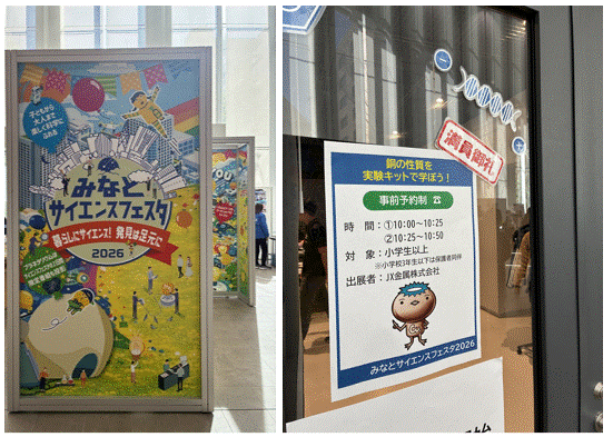 3月8日(日)、当社は、東京都港区立みなと科学館主催のイベント「みなとサイエンスフェスタ2026~暮らしにサイエンス!発見は足元に~」に協力し、銅の性質を学ぶ実験教室を開催しました。