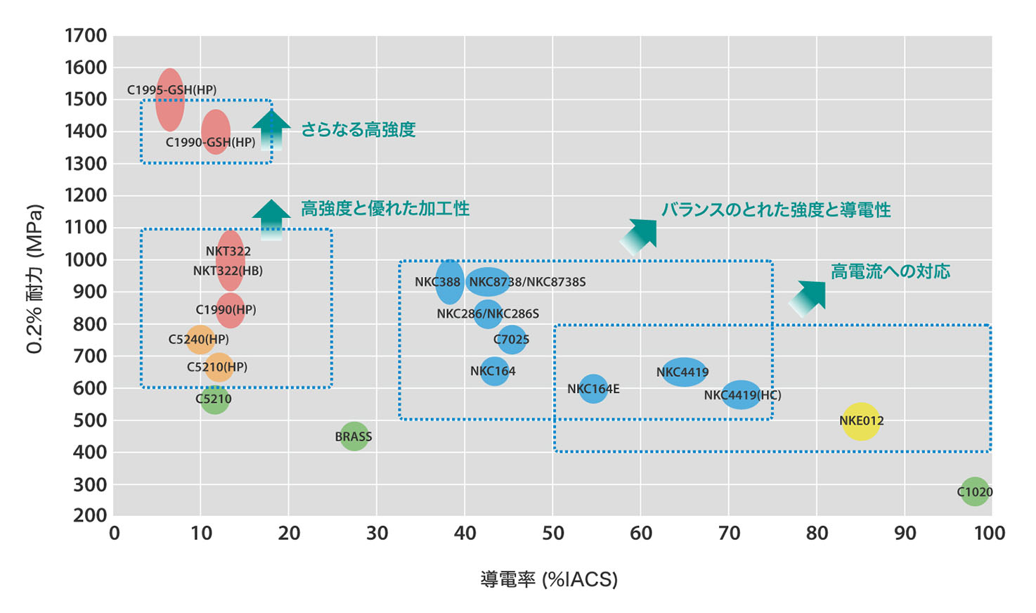 - 強度と導電率のバランス、曲げ加工性に優れる