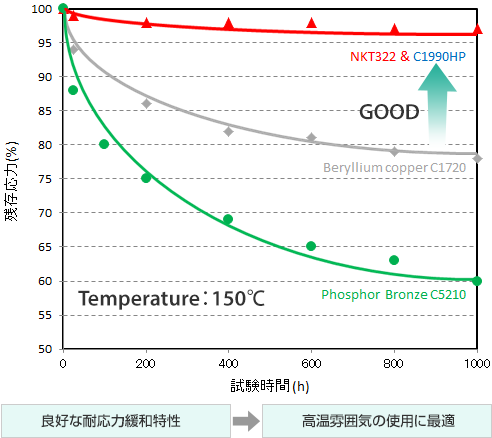 銅合金の中で最高レベルの耐応力緩和特性を有し、高温下でも接触力を保持
