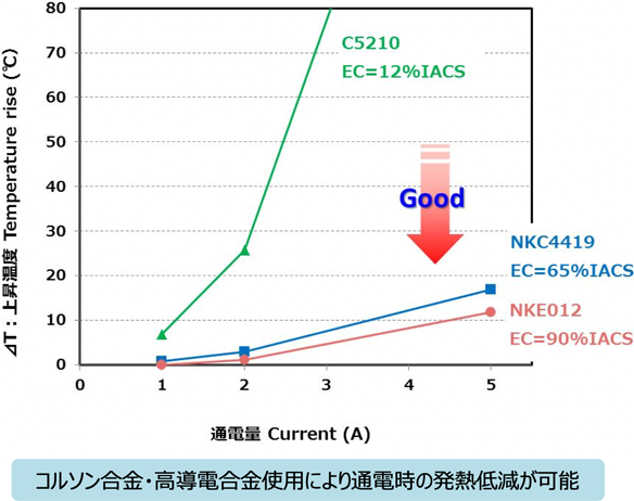 - 2.純銅に対し高強度、高耐熱性、良好な応力緩和特性