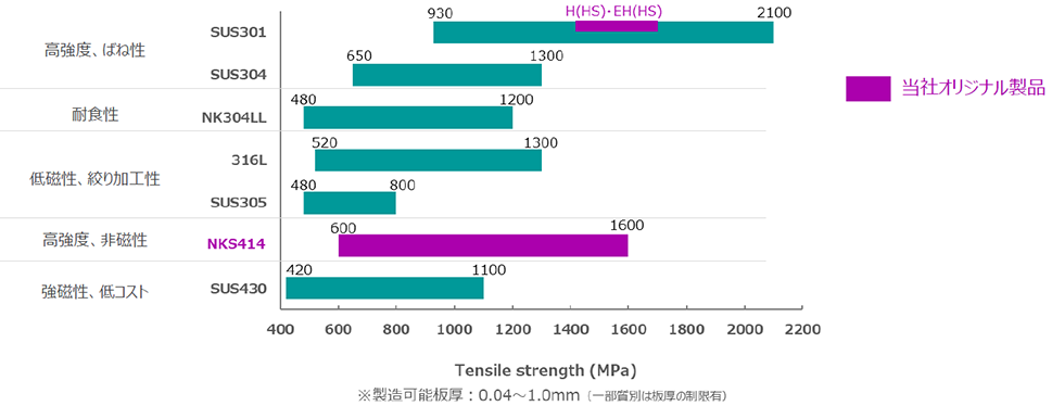 高強度・高伸び・高疲労強度ステンレス SUS301(HS) -High Strength-