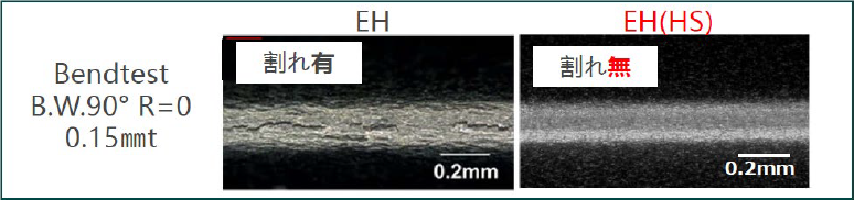 従来の強度では不可能であった厳しい曲げ加工が可能