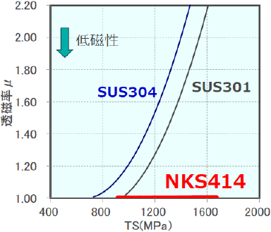 TS:1500MPa超(質別EH(HS))でも低磁性を維持