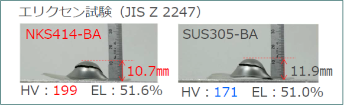 質別BAではSUS305より高硬度で同等の絞り加工性