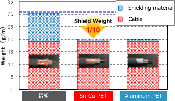 • 編組と比較してシールド材重量を約1/10に軽量化できます。
