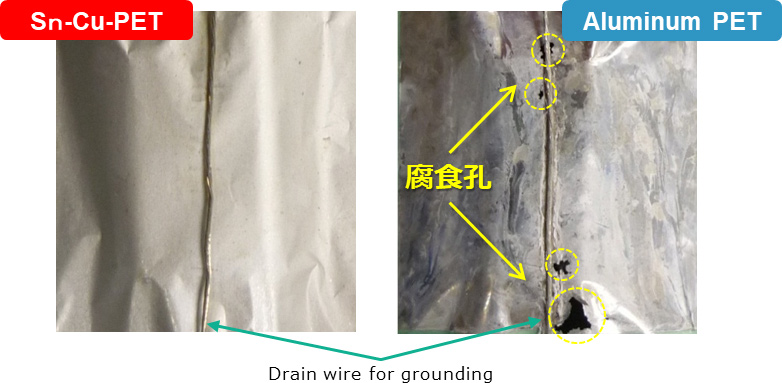 Sn-Cu-PETの耐食性:塩水噴霧試験