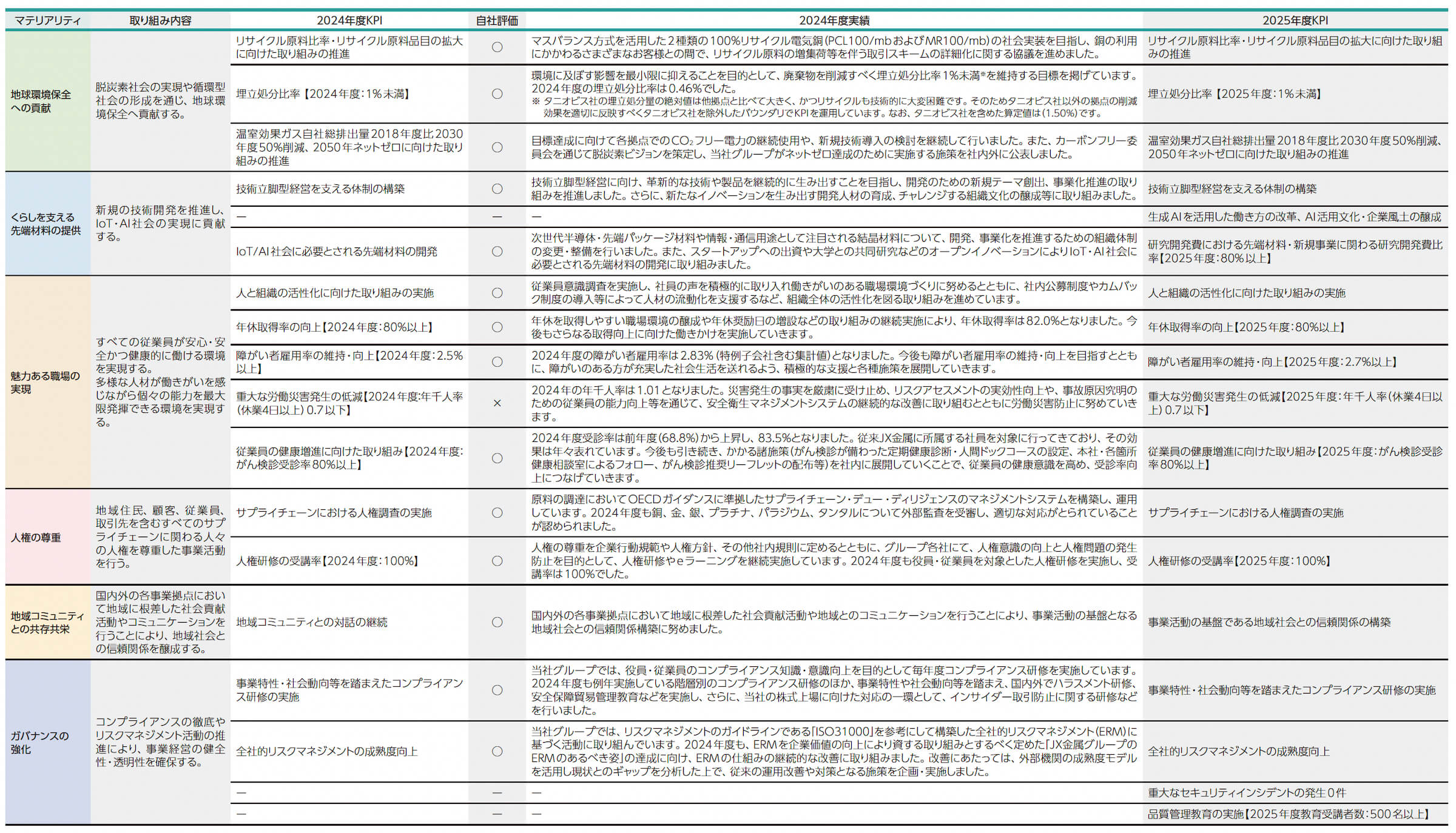 当社グループでは、2040年長期ビジョンの実現に向け、優先的に取り組むべき6つのマテリアリティを特定しています。各マテリアリティはKPIを設定した上で、社長を議長とするESG推進会議にて達成度合いを測定・評価しながら運用しています。