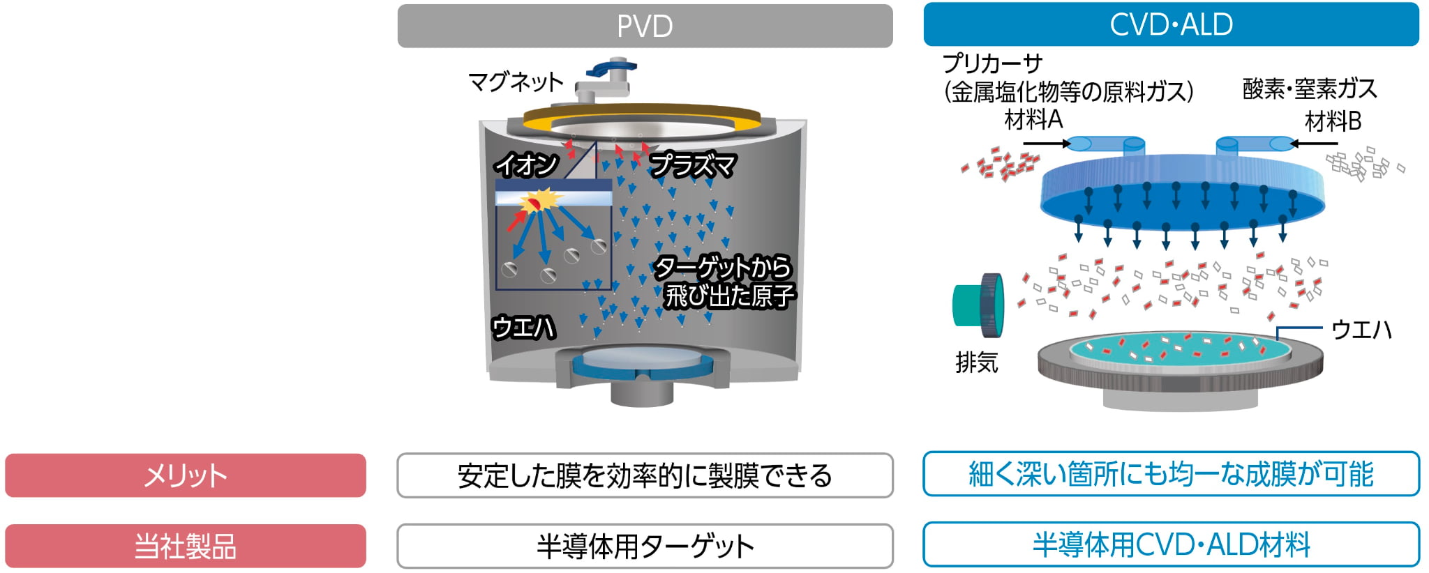PVD法とCVD・ALD法の比較