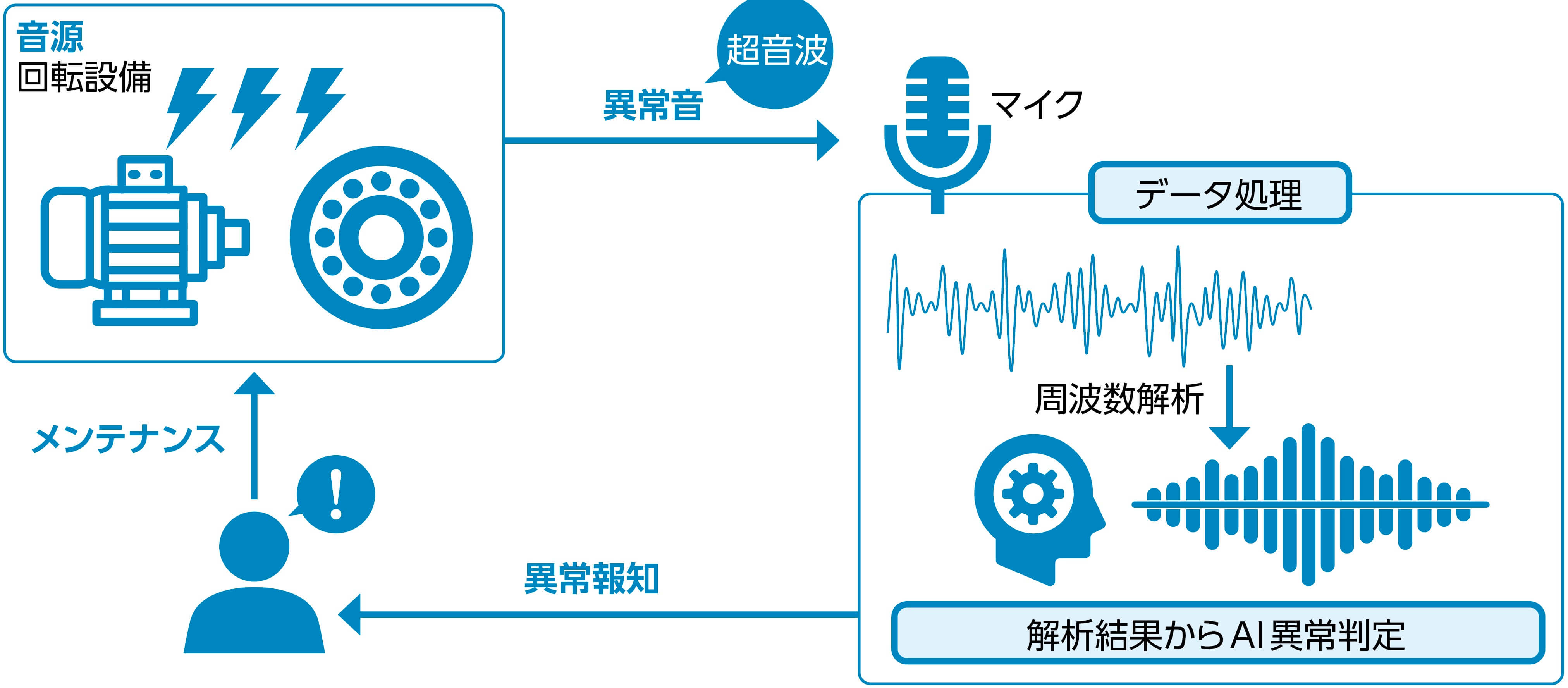 超音波音による回転体予知保全のイメージ